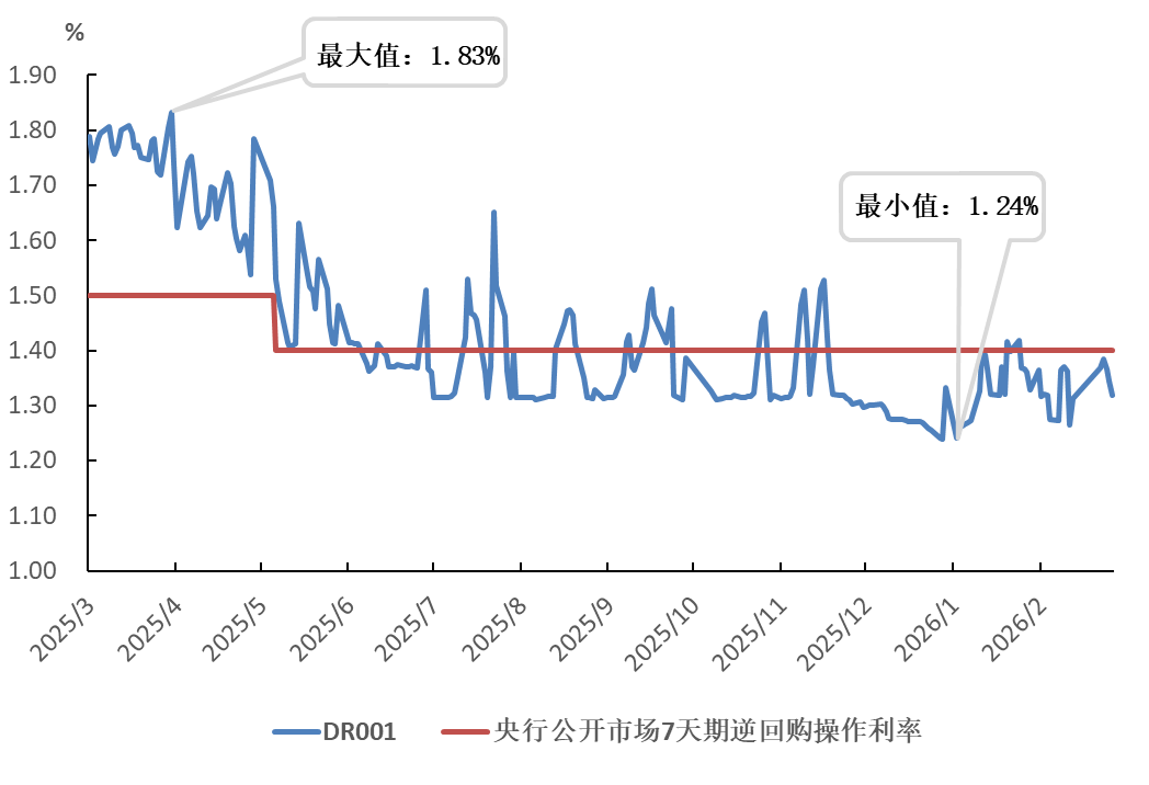 图2 2026年1-2月DR001与央行政策利率