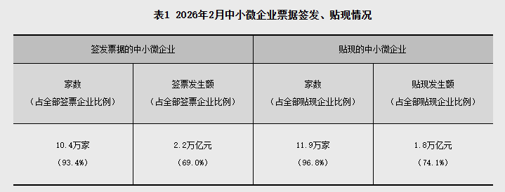 2026年2月,商业汇票承兑发生额3.1万亿元,贴现发生额2.4万亿元。2026年2月末,商业汇票承兑余额20.8万亿元,同比增加6.1%;贴现余额15.7万亿元,同比增加8.5%。