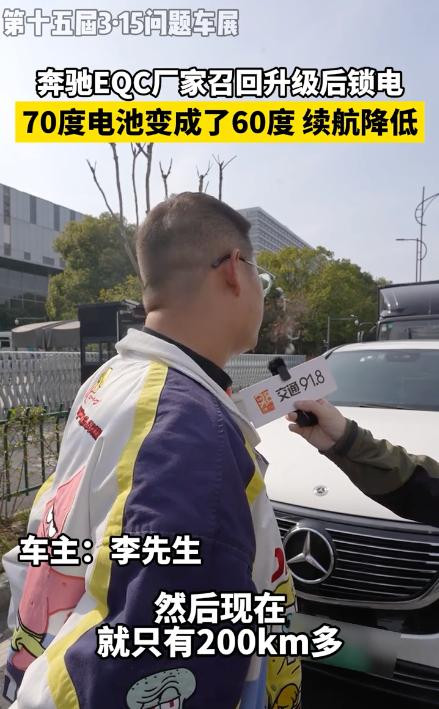 这本该是一次体现企业责任感的召回。然而,回家后不久,诡异的事情发生了。“续航从 400 多公里,直接掉到了 200 多公里。” 这是几乎所有 EQC 车主的共同遭遇。