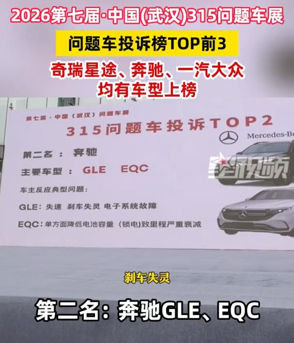 2026 年 315 消费者权益日期间,杭州、广州、武汉等地的问题车展成为舆论风暴眼。与往年不同,今年最受关注的并非小众品牌,而是豪华品牌标杆 —— 奔驰。其中,奔驰 EQC 车主集体维权事件,以 “召回锁电” 为核心矛盾,成为本届 315 最刺眼的焦点。