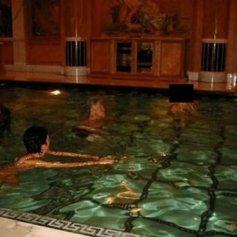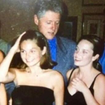 照片里克林顿站在两个年轻女孩身后,一只手轻轻放在圆脸抹胸裙女孩身侧,眼睛却看向另外一名穿着吊带的女孩胸前,嘴唇微张鼻头泛红,猴急之情溢于言表。